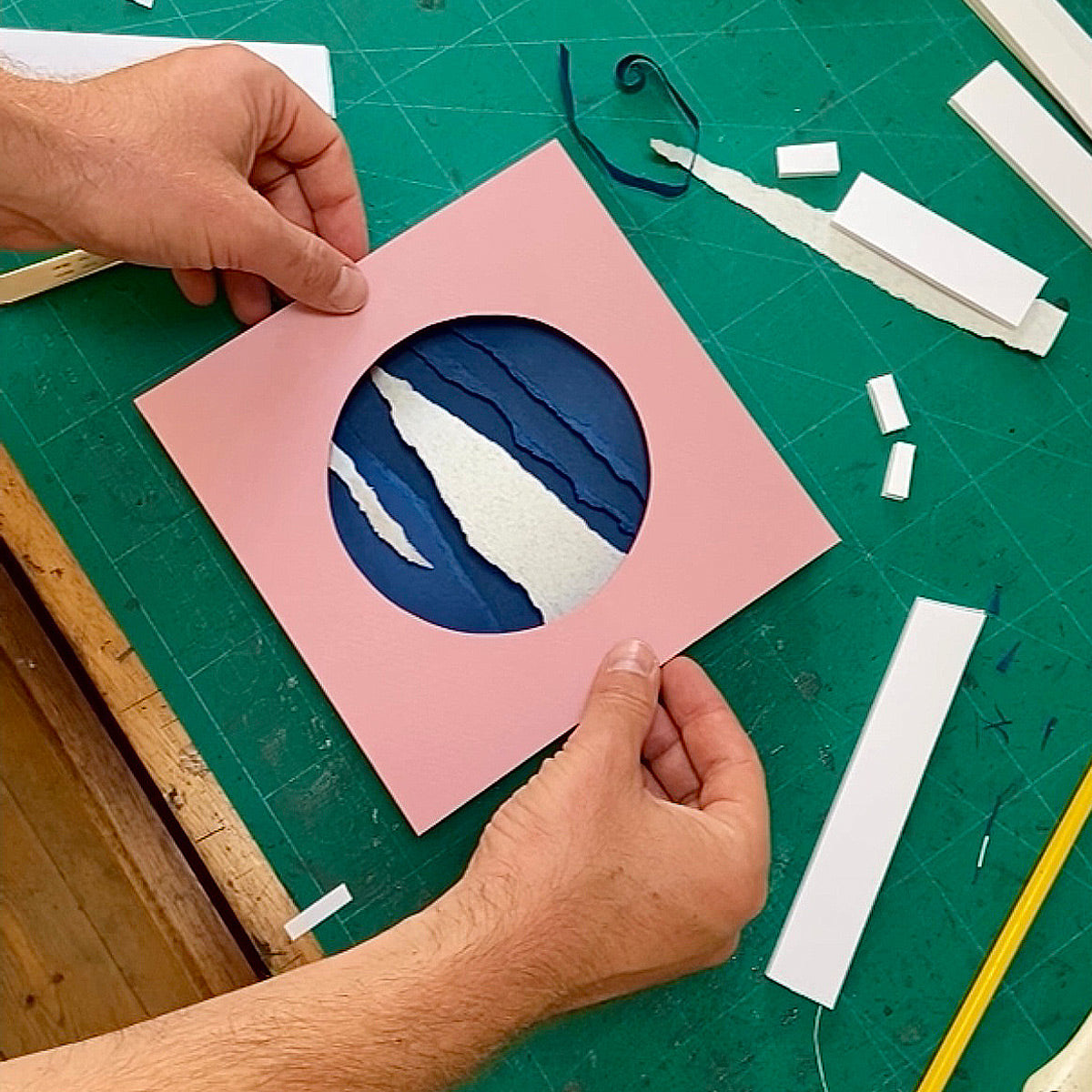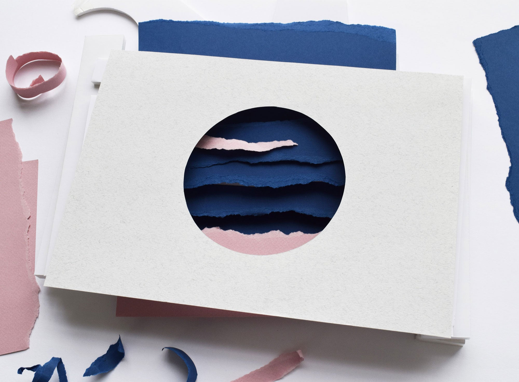 'Torn Giants' is a series of personal explorations, created using multiple layers of torn paper and framed with a handcut graphic window. Each artwork was hand-assembled in Owen's studio using sheets of torn paper, making each piece truly unique.